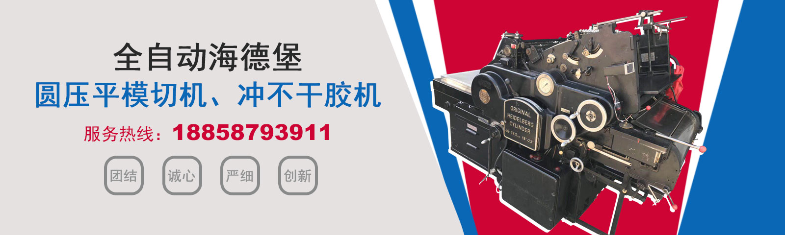 瑞安市恒柯機械廠(www.wzhkjx_com.juanchengsichuang.cn)是國內專業制造銷售全自動模切機,全自動燙金機,圓壓平模切機,圓壓平燙金機,滾筒燙金機,沖不干膠機,海德堡凸印機.銷售的產品系列規格齊全,產品具有速度快,壓力均勻,套印準確等特點。
